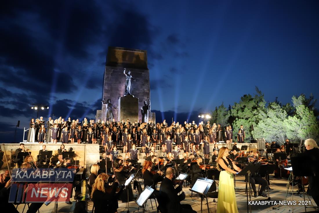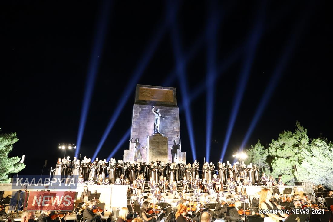 Σπουδαία επετειακή εκδήλωση για τον εορτασμό των 200 ετών από την Επανάσταση του 1821, στο Ηρώο Εθνικής Παλιγγενεσίας Αγωνιστών 1821, στα Καλάβρυτα, έγινε την Πραασκευή. Στην εκδήλωση συμμετέχουν 250 καλλιτέχνες που αποδίδουν τον “Ύμνο προς την Ελευθερίαν”.