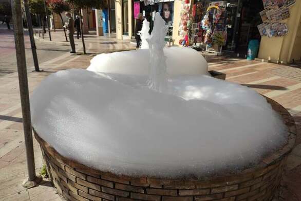Στο επίκεντρο της προσοχής βρίσκεται από το πρωί το συντριβανάκι στην κεντρική πλατεία του Αγρινίου, στο τέλος του πεζοδρόμου της Ηλίας Ηλίου. Ο λόγος; Πασιφανής. Οι σαπουνάδες το έχουν… κυριεύσει και οι περαστικοί σταματούν για λίγο να «χαζέψουν» το θέαμα.