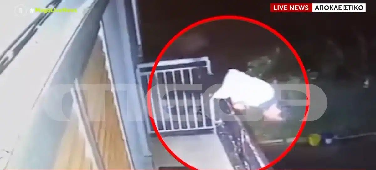 Όλα έγιναν τη νύχτα της 23ης Ιανουαρίου. Ο 57χρονος εμφανίζεται στο πλάνο και κάνει 5 βήματα μέχρι να ανέβει στα κάγκελα του μπαλκονιού. Πιάνεται με τα δυο του χέρια όταν ξαφνικά το κέντρο βάρους του μετατοπίζεται και ο ίδιος καταλήγει στο κενό από τον 1ο όροφο.