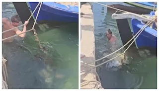 Βούτηξε στη θάλασσα αλλά την ώρα που προσπαθούσε να την απεγκλωβίσει, η χελώνα του επιτέθηκε δαγκώνοντάς τον στα… οπίσθια.