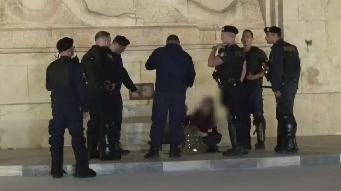 Αστυνομικοί επενέβησαν την Κυριακή για να απομακρύνουν μία γυναίκα που είχε καθίσει πάνω στο Μνημείο του Αγνώστου Στρατιώτη.
