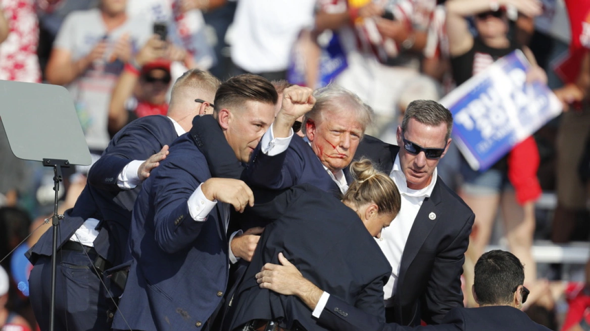 O 78χρονος Τραμπ μόλις είχε ξεκινήσει την ομιλία του όταν ακούστηκαν πυροβολισμοί. Αμέσως ο υποψήφιος των Ρεπουμπλικάνων έπιασε το δεξί του αυτί, ενώ αίματα γέμισαν το πρόσωπό του.