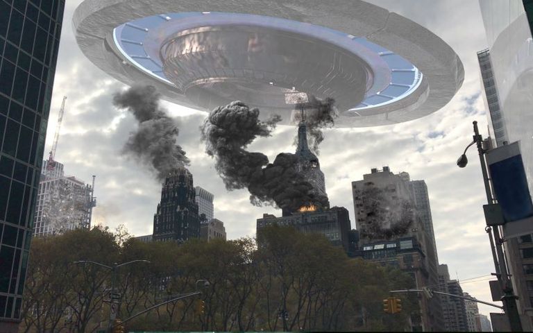 Η εκπομπή συνέχισε με δραματικές περιγραφές δημοσιογράφων για το πώς ένας εξωγήινος στρατός από πλάσματα που μοιάζουν με καλαμάρια σκότωναν χιλιάδες ανθρώπους με ακτίνες και μαύρα σύννεφα από δηλητηριώδη αέρια, καθώς εξαπλώνονταν στην πόλη της Νέας Υόρκης.