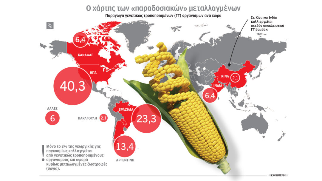 Ποιος θυµάται τα μεταλλαγμένα; Πριν από μερικά χρόνια ήταν ένα από τα πιο «καυτά» θέματα του περιβαλλοντικού κινήματος. Το τελικό αποτέλεσμα των πολιτικών και επιστημονικών αντιπαραθέσεων ήταν η ουσιαστική απόρριψη των γενετικώς τροποποιημένων οργανισμών (ΓΤΟ) στον ευρωπαϊκό χώρο. Οι καταναλωτές δεν τα ήθελαν, οι αγρότες ανησυχούσαν για τις πωλήσεις των προϊόντων και για την ομηρία τους από πατέντες, οι (περισσότερες) κυβερνήσεις ακολούθησαν την κοινή γνώμη επιβάλλοντας απαγορεύσεις. Μόνο σε Ισπανία (κυρίως) και Πορτογαλία υπάρχουν σχετικά μικρές καλλιέργειες μεταλλαγμένων (βασικά σόγια). Στην Ελλάδα δεν επιτρέπεται η καλλιέργεια γενετικώς τροποποιημένων οργανισμών. Βεβαίως υπήρχε μια κερκόπορτα κι αυτή ήταν οι ζωοτροφές. Η εισαγωγή μεταλλαγμένων ζωοτροφών επιτρέπεται, με τη «σήμανση» να μην ακολουθεί το ζώο που έχει τραφεί με μεταλλαγμένες τροφές. Τελικά, τα μεταλλαγμένα βγήκαν από τη συζήτηση, αλλά όχι από το πιάτο μας.