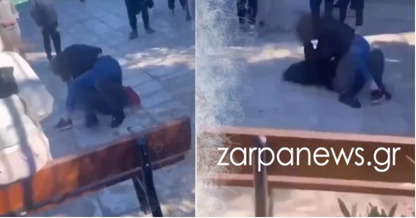 Όπως φαίνεται στο βίντεο της ιστοσελίδας, zarpanews.gr, το περιστατικό του άγριου ξυλοδαρμού διαδραματίζεται στο προαύλιο σχολείου.
