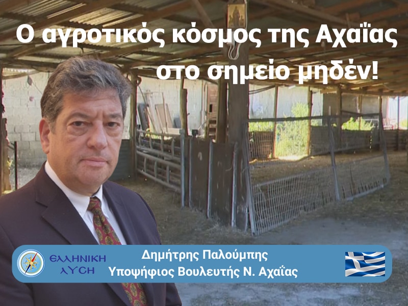 Δ. ΠΑΛΟΥΜΠΗΣ: Ο αγροτικός κόσμος της Αχαΐας στο σημείο μηδέν! Οι αγρότες και οι κτηνοτρόφοι ζητούν σεβασμό, όχι υποσχέσεις