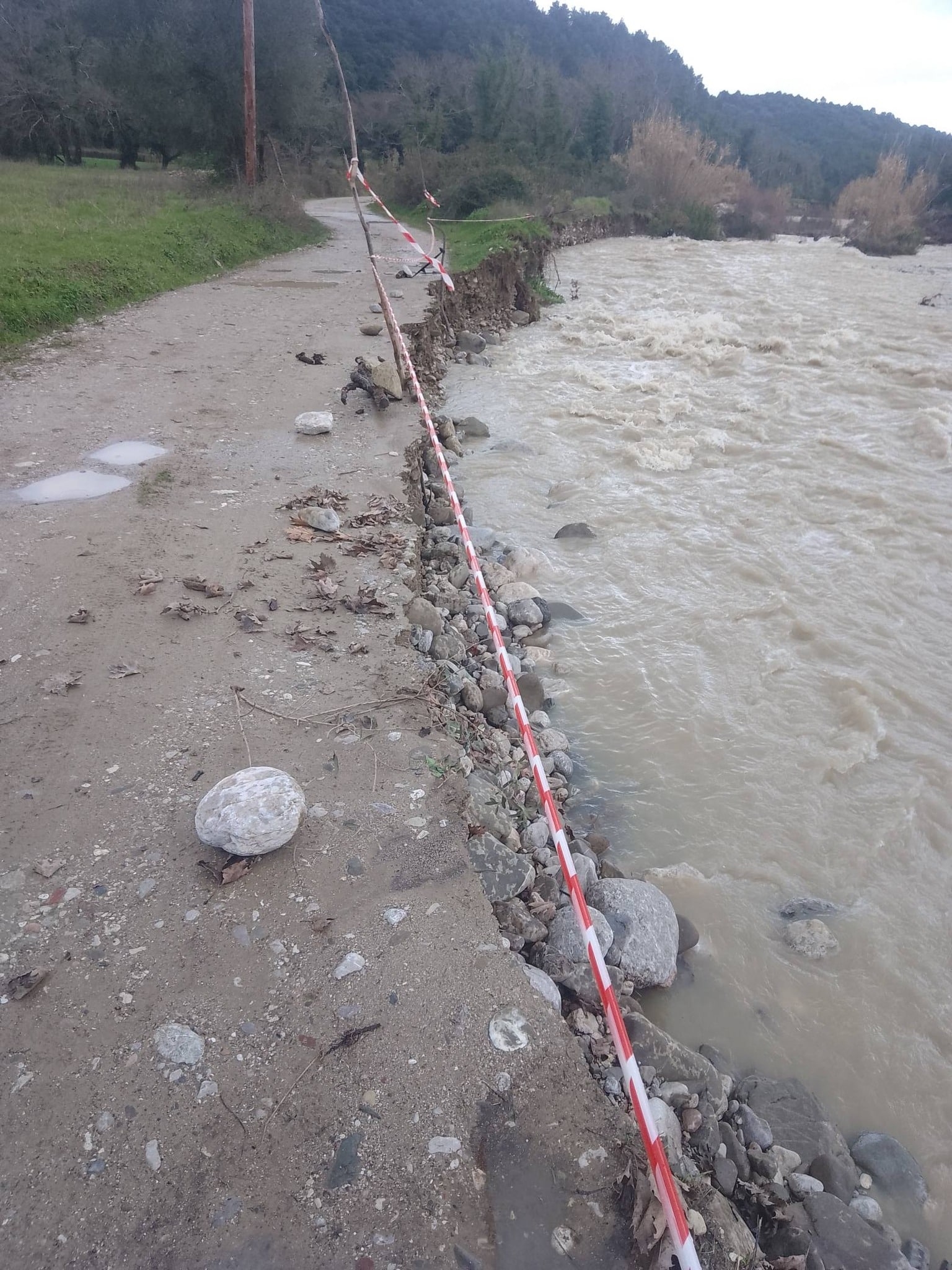 Πρόβλημα στον δρόμο που συνδέει το Κυπαρίσσι Αχαϊας με την 111 και άλλα χωριά καθώς τμήμα του κατέρρευσε στον χείμαρρο Τεθρέα. Οι εικόνες είναι χαρακτηριστικές. Οπως λένε οι κάτοικοι, αντί να γίνει έργο… αρκέστηκαν σε κορδέλες. Καταγγέλλουν για αδιαφορία τον Δήμο Ερυμάνθου.
