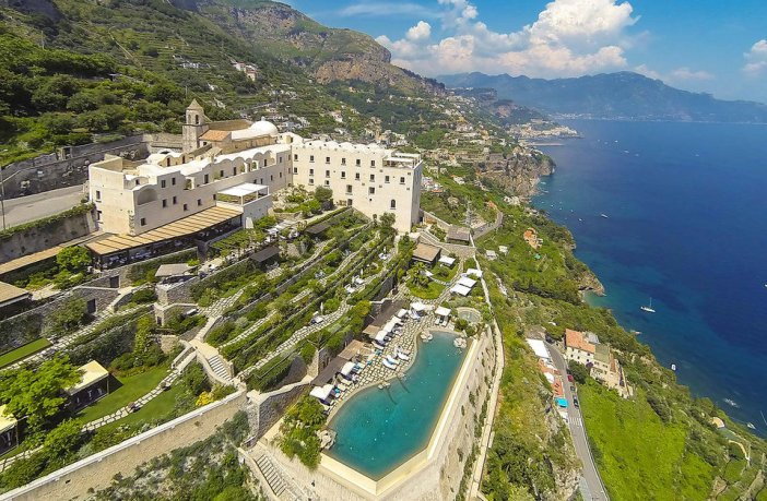 Κατά μήκος αυτής της γοητευτικής ακτής κοντά στο γραφικό ψαροχώρι Conca dei Marini, βρίσκεται το πολυτελές ξενοδοχείο Monastero Santa Rosa, το οποίο είναι φωλιασμένο σε ένα βραχώδες τοπίο με θέα τον κόλπο του Σαλέρνο.