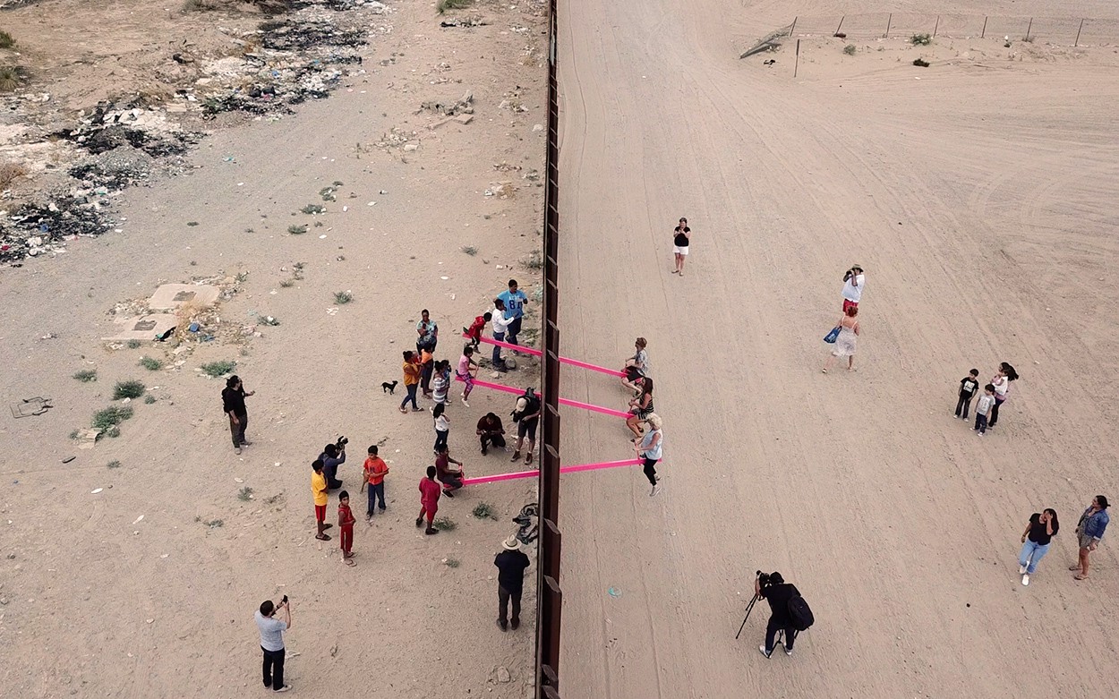 Οι τρεις ροζ τραμπάλες σύμφωνα με το ΑΠΕ εγκαταστάθηκαν στο τείχος, την ανέγερση του οποίου προωθούσε ο Ντόναλντ Τραμπ, στο σημείο μεταξύ El Paso του Τέξας καιCiudad Juárez του Μεξικού επί 40 λεπτά.