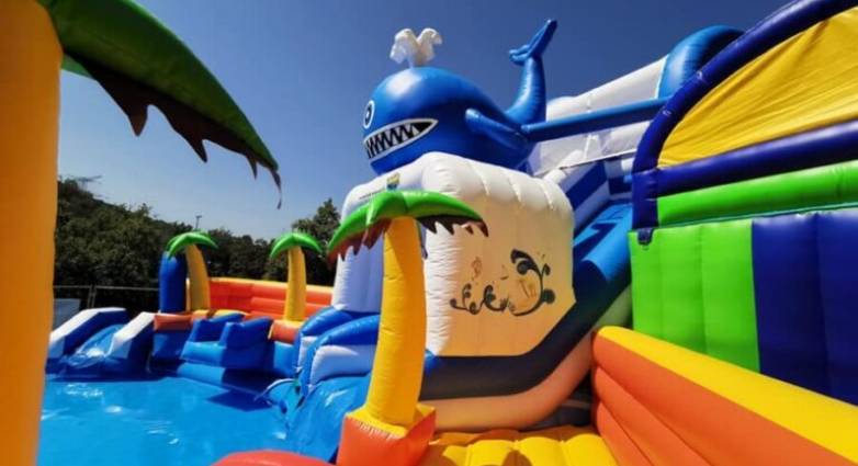 Συγκεκριμένα χθες το απόγευμα μία φουσκωτή κατασκευή ύψους 20 μέτρων στο Wonderland Waterpark, στην τουριστική πόλη Σεν-Μαξιμέν-λα-Σεντ-Μπομ, παρασύρθηκε από τον αέρα κάνοντας άλμα ύψους 50 μέτρων με δύο ανθρώπους στο εσωτερικό της.