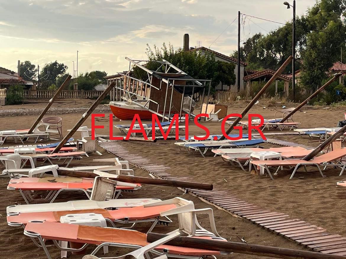 Χθεςτο απόγευμα, οι δυνατοί άνεμοι σε συνδυασμό με την έντονη βροχόπτωση που έφερε η κακοκαιρία Daniel, ισοπέδωσαν στην κυριολεξία τα πάντα στην παραλία του Επιταλίου στην Ηλεία.