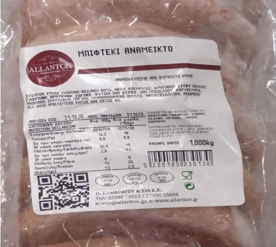 Σε δειγματοληψία τροφίμου «ΜΠΙΦΤΕΚΙ ΚΑΤΕΨΥΓΜΕΝΟ» με κωδικό παρτίδας 31102025 και ημερομηνία ανάλωσης έως 31.10.2026, που παράγεται από την επιχείρηση «Π.ΚΑΜΑΡΑΤΟΥ & ΣΙΑ ΕΕ» προέβη ο ΕΦΕΤ και συγκεκριμένα η Περιφερειακή Διεύθυνση Πελοποννήσου, κατά τη διενέργεια ελέγχων.