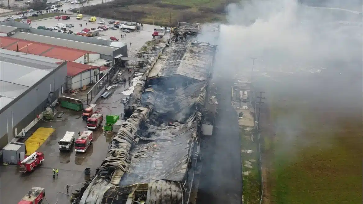 Οι εικόνες που καταγράφονται από ψηλά αποτυπώνουν ένα σκηνικό απόλυτης καταστροφής. Το εργοστάσιο της Βιολάντα, μια εκτεταμένη βιομηχανική μονάδα, μοιάζει να έχει ισοπεδωθεί ύστερα από την ισχυρή έκρηξη και τη φωτιά που ακολούθησε, με αποτέλεσμα να βρουν τραγικό θάνατο τέσσερις γυναίκες και να αγνοείται ακόμη μία εργαζόμενη.