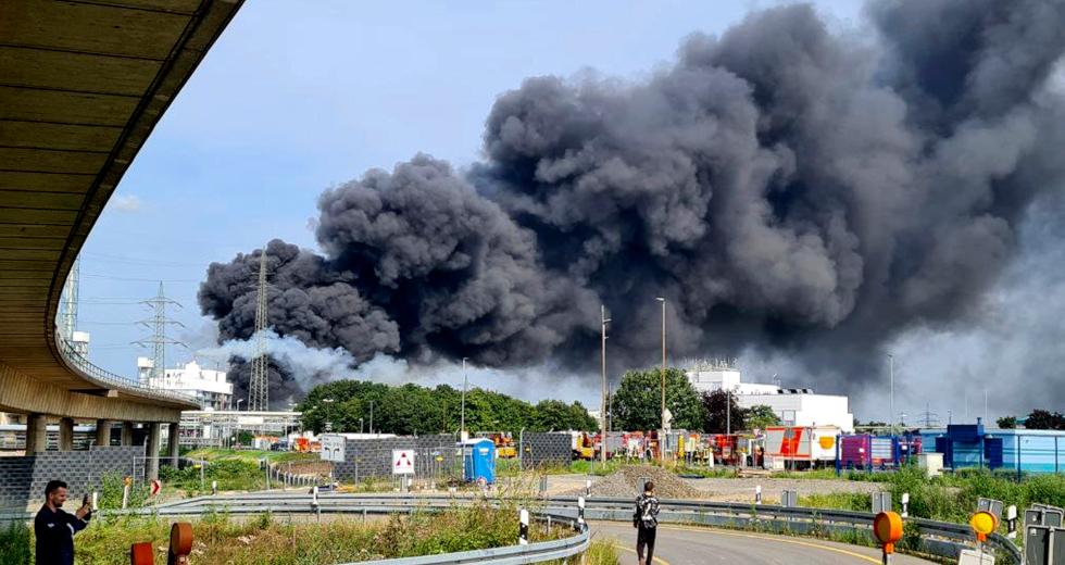 Η φωτιά, σύμφωνα με την BILD, απειλεί να εξαπλωθεί σε παρακείμενο κτίριο με εύφλεκτα υλικά, ενώ σε μικρή απόσταση βρίσκονται δεξαμενές με 100.000 λίτρα εύφλεκτου υγρού σιδήρου.
