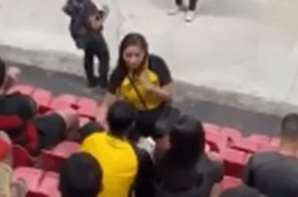 Συγκεκριμένα μία οπαδός εντόπισε τον σύντροφό της να κάθεται μαζί με μια άλλη γυναίκα, πλησίασε το ζευγάρι και, ειρωνικά, χειροκροτεί τον σύντροφό της.