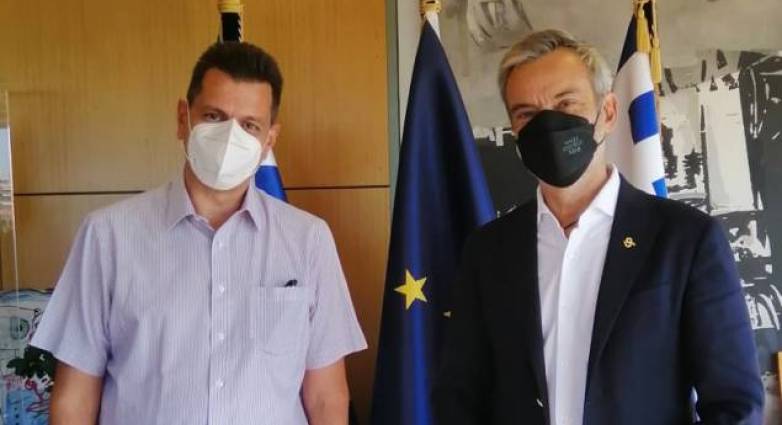 Στο Δημαρχείο Θεσσαλονίκης και σε πολύ ζεστό κλίμα πραγματοποιήθηκε η συνάντηση του Πέτρου Ψωμά με τον δήμαρχο της συμπρωτεύουσας Κωνσταντίνο Ζέρβα. Ο Δήμαρχος Θεσσαλονίκης υποδέχτηκε τον επικεφαλής του σπιράλ και συζήτησε μαζί του θέματα που απασχολούν την αυτοδιοίκηση συνολικά και την δημαρχία του ειδικότερα, σε μια χρονική στιγμή που ταυτίζεται με το μέσο της δημαρχιακής του θητείας.