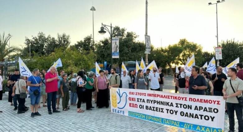 Η Επιτροπή Ειρήνης Πάτρας και Δυτικής Αχαΐας της Ε.Ε.Δ.Υ.Ε στο πλαίσιο της κλιμάκωσης της πολύμορφης δράσης της, που βρίσκεται σε εξέλιξη, ενάντια στην εμπλοκή της Ελλάδας στους πολεμικούς σχεδιασμούς των ΗΠΑ-ΝΑΤΟ-ΕΕ, στο συνεχιζόμενο αιματοκύλισμα του Παλαιστινιακού Λαού και τη συμμετοχή της φρεγάτας «ΥΔΡΑ» στην επιχείρηση «ΑΣΠΙΔΕΣ» της Ε.Ε. στην Ερυθρά Θάλασσα, αποφάσισε την πραγματοποίηση της Πανελλαδικής Ημέρας Αντιιμπεριαλιστικής Δράσης στις 21 Απριλίου 2024.