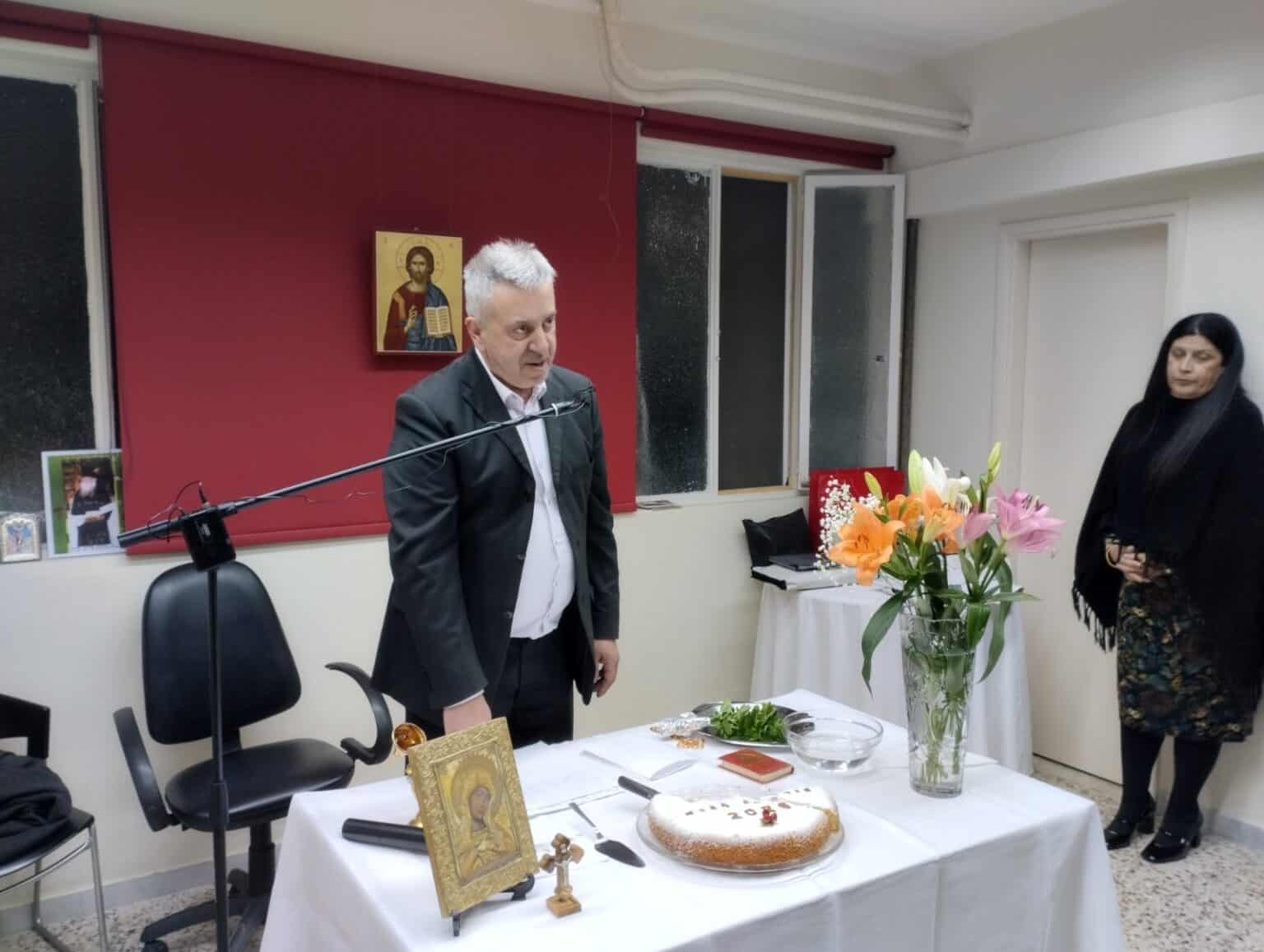 Την πίτα ευλόγησαν ο εφημέριος της ενορίας Παντοκράτορος, πατήρ Φίλιππος, και ο πατήρ Μάρκος Τζανακάκης, θεολόγος και ιεροκήρυκας της Ι.Μ. Καλαβρύτων και Αιγιαλείας, καθώς και μέλος της Αδελφότητας «Σωτήρ», ο οποίος πραγματοποίησε επίκαιρη ομιλία σχετικά με τον κοσμικό και τον πνευματικό χρόνο.