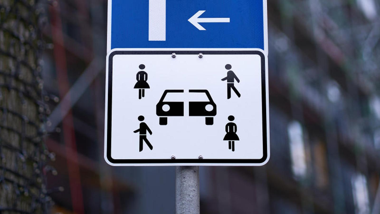 Η πινακίδα που έχει ήδη γίνει viral προκαλώντας εύλογα ερωτηματικά για τη σημασία και τη χρησιμότητά της, απεικονίζει ένα όχημα χωρισμένο σε δύο μέρη και τις φιγούρες τεσσάρων ατόμων.