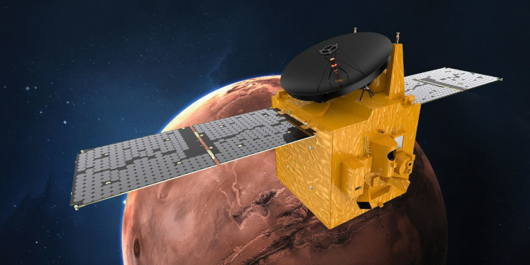 Η φωτογραφία τραβήχθηκε την Τετάρτη, μία ημέρα αφότου μπήκε επιτυχώς σε τροχιά το σκάφος που στα αραβικά αποκαλείται «Αμάλ». Τα Ηνωμένα Αραβικά Εμιράτα έγιναν έτσι η πρώτη αραβική χώρα που πραγματοποιεί ένα τέτοιο επίτευγμα.