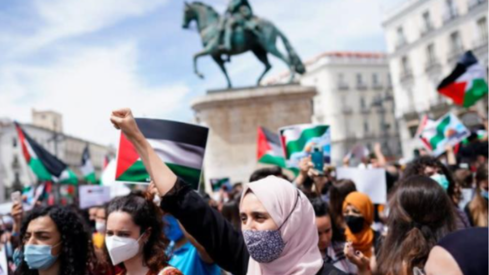 Περίπου 2.500 άνθρωποι διαδήλωσαν σήμερα, σε ειρηνικό κλίμα, και στο κέντρο της Μαδρίτης, για να εκφράσουν τη συμπαράστασή του στους Παλαιστίνιους, με φόντο τη στρατιωτική κλιμάκωση μεταξύ της Χαμάς και του Ισραήλ, σύμφωνα με την ισπανική αστυνομία.