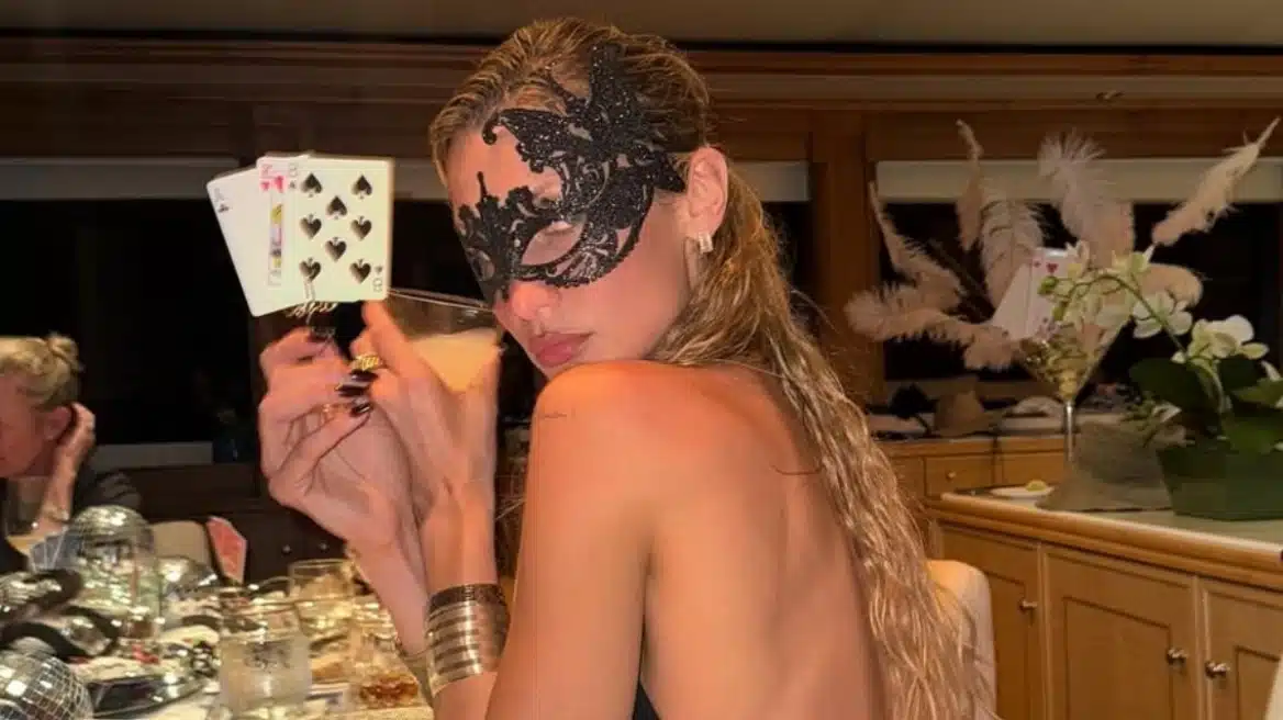 Καθισμένη σε ένα τραπέζι σε σκάφος και κρατώντας στα χέρια της μία τράπουλα, η Μπέλα Χαντίντ πήρε σέξι πόζες και μοιράστηκε τις εικόνες με τους διαδικτυακούς της ακόλουθους στον προσωπικό της λογαριασμό στο Instagram.