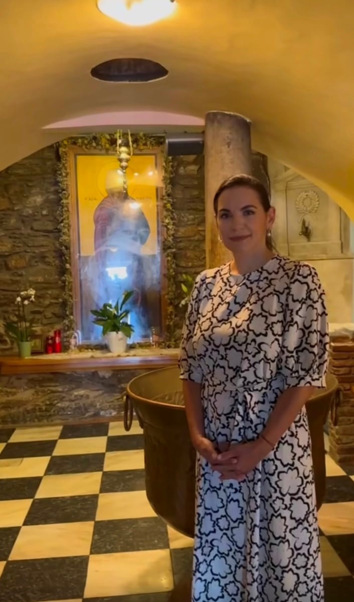 Η υπουργός Τουρισμού ταξίδεψε μέχρι την Τήνο και άναψε κερί στον ναό συγκινημένη, καθώς σε αυτή την εκκλησία η Ολγα βαφτίστηκε.