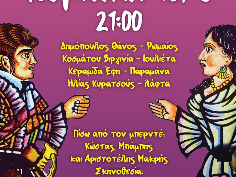 Το αριστουργηματικό έργο του Ουίλλιαμ Σαίξπηρ, «Ρωμαίος και Ιουλιέτα», σε διασκευή του σπουδαίου καραγκιοζοπαίχτη Βασίλη Ανδρικόπουλου (Βασίλαρου), γράφτηκε για το θέατρο σκιών το 1948 και παρουσιάστηκε από τον ίδιο για πρώτη φορά στο Αίγιο.