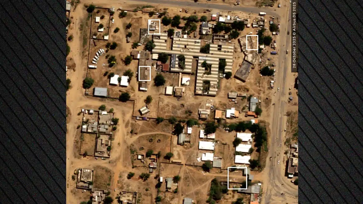 Στις δορυφορικές εικόνες που συλλέχθηκαν στις 27 Οκτωβρίου 2025, φαίνονται στοιχισμένοι στην άμμο σωροί από πτώματα, που σχηματίζουν μια γραμμή έξω από το πρώην Παιδικό Νοσοκομείο, η οποία εκτείνεται από το κτίριο μέχρι την πύλη του συγκροτήματος.
