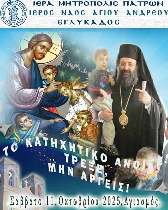 Τα Κατηχητικά Σχολεία του Ιερού Ναού Αγίου Ανδρέου Εγλυκάδος ανοίγουν τις πύλες τους το Σάββατο 11 Οκτωβρίου με τον καθιερωμένο αγιασμό.