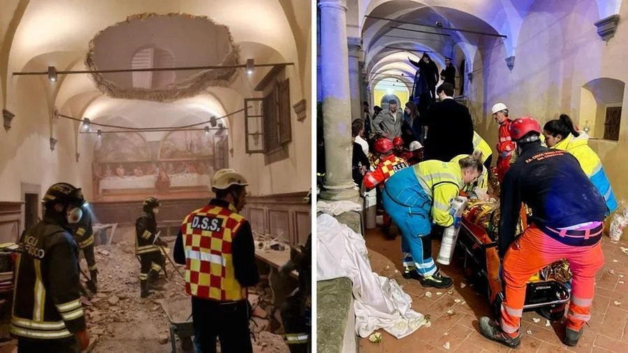 Περίπου 35 άνθρωποι τραυματίσθηκαν στην πόλη Πιστόια της κεντρικής Ιταλίας όταν αργά το βράδυ του Σαββάτου υποχώρησε το πάτωμα αίθουσας στην οποία βρισκόταν σε εξέλιξη πάρτι γάμου και οι καλεσμένοι βρέθηκαν ξαφνικά στο ισόγειο.