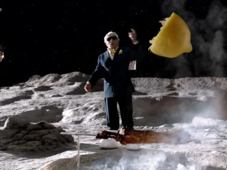 Πασχαλινά κόκκινα αυγά ως διαστημόπλοια στη Σελήνη, μία στρίπερ-λαγουδάκι να κάνει pole dancing, ένα αρνί στη σούβλα, ποτήρια με μπύρα σε συνθήκες έλλειψης βαρύτητας και ένας “στρατός” από ψήστες.