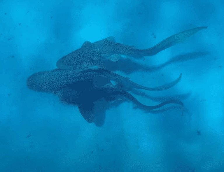 «Περίμενα μια ώρα, παγώνοντας στο νερό, αλλά τελικά άρχισαν να κολυμπούν προς τα πάνω. Τελείωσε γρήγορα και για τα δύο αρσενικά, το ένα μετά το άλλο. Το πρώτο χρειάστηκε 63 δευτερόλεπτα, το άλλο 47», σχολίασε ο ειδικός και πρόσθεσε ότι είναι σπάνιο όχι μόνο να βλέπει κανείς καρχαρίες και δη απειλούμενους να ζευγαρώνουν στην άγρια φύση, αλλά και να μαγνητοσκοπεί τη στιγμή.