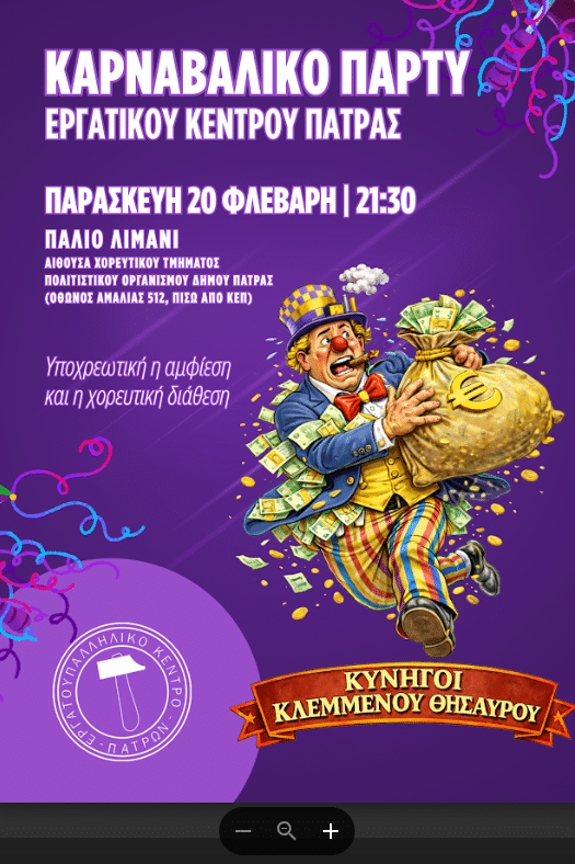 Καρναβαλιστές ή μη, σας προσκαλούμε στο Καρναβαλικό Πάρτυ που διοργανώνει το Εργατικό Κέντρο Πάτρας!