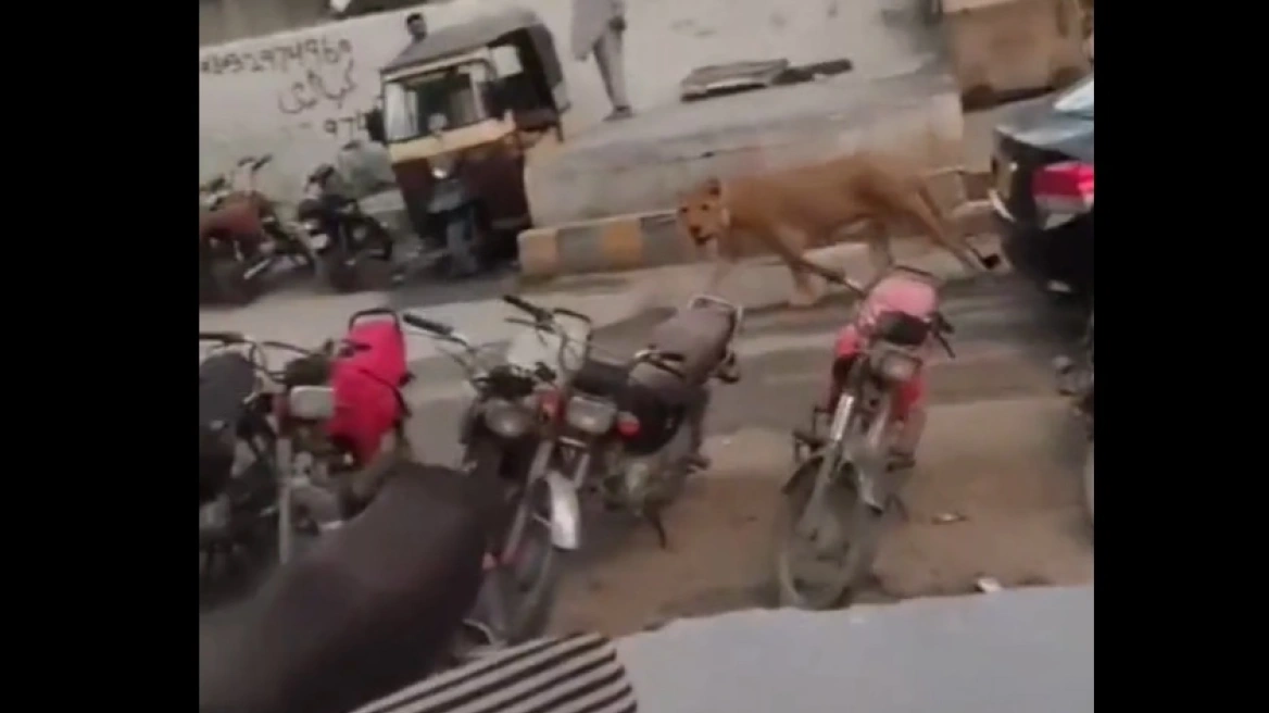 Ένα λιοντάρι το έσκασε μέσα από ένα ιδιωτικό όχημα και βρέθηκε να κυκλοφορεί ελεύθερο, σε ώρα αιχμής, στους δρόμους του Καράτσι, προκαλώντας πανικό στους κατοίκους επί δύο ώρες μέχρι να το πιάσουν και πάλι.