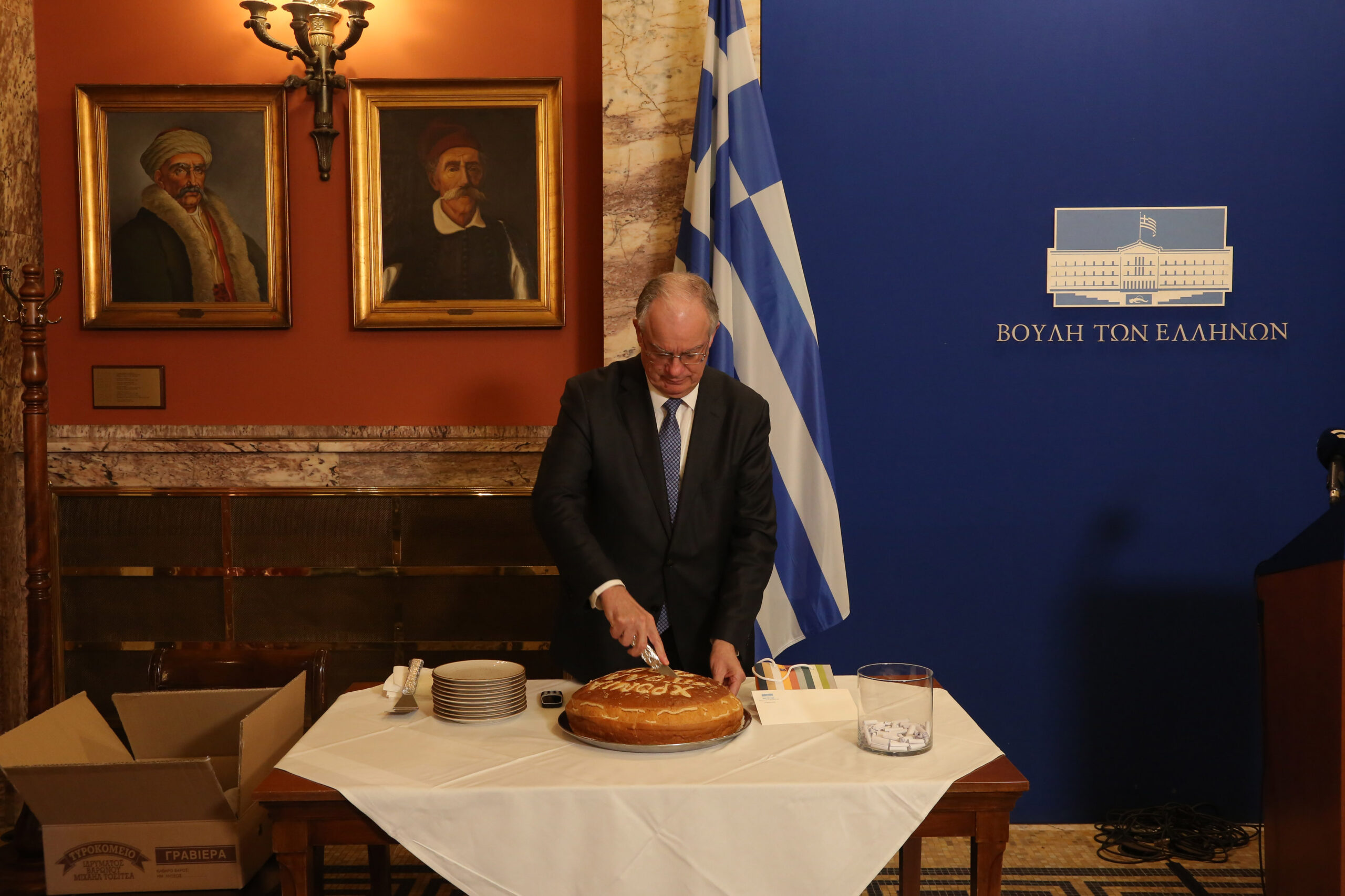 «Η Βουλή των Ελλήνων κόβει την πρωτοχρονιάτικη πίτα με τους κοινοβουλευτικούς συντάκτες, δηλαδή τους ανθρώπους που είναι για μας το ορθάνοιχτο παράθυρό μας στην κοινή γνώμη» ανέφερε ο Πρόεδρος της Βουλής, κ. Κωνσταντίνος Τασούλας, κατά τη διάρκεια της κοπής της καθιερωμένης πρωτοχρονιάτικης πίτας των κοινοβουλευτικών συντακτών και των φωτογράφων που καλύπτουν το κοινοβουλευτικό φωτορεπορτάζ, εκφράζοντας, παράλληλα, τις ευχές του για «υγεία, επαγγελματικές κατοχυρώσεις και επιτυχίες».