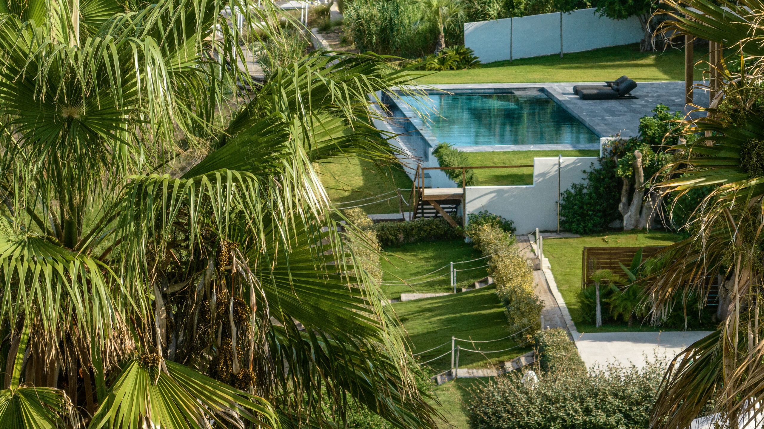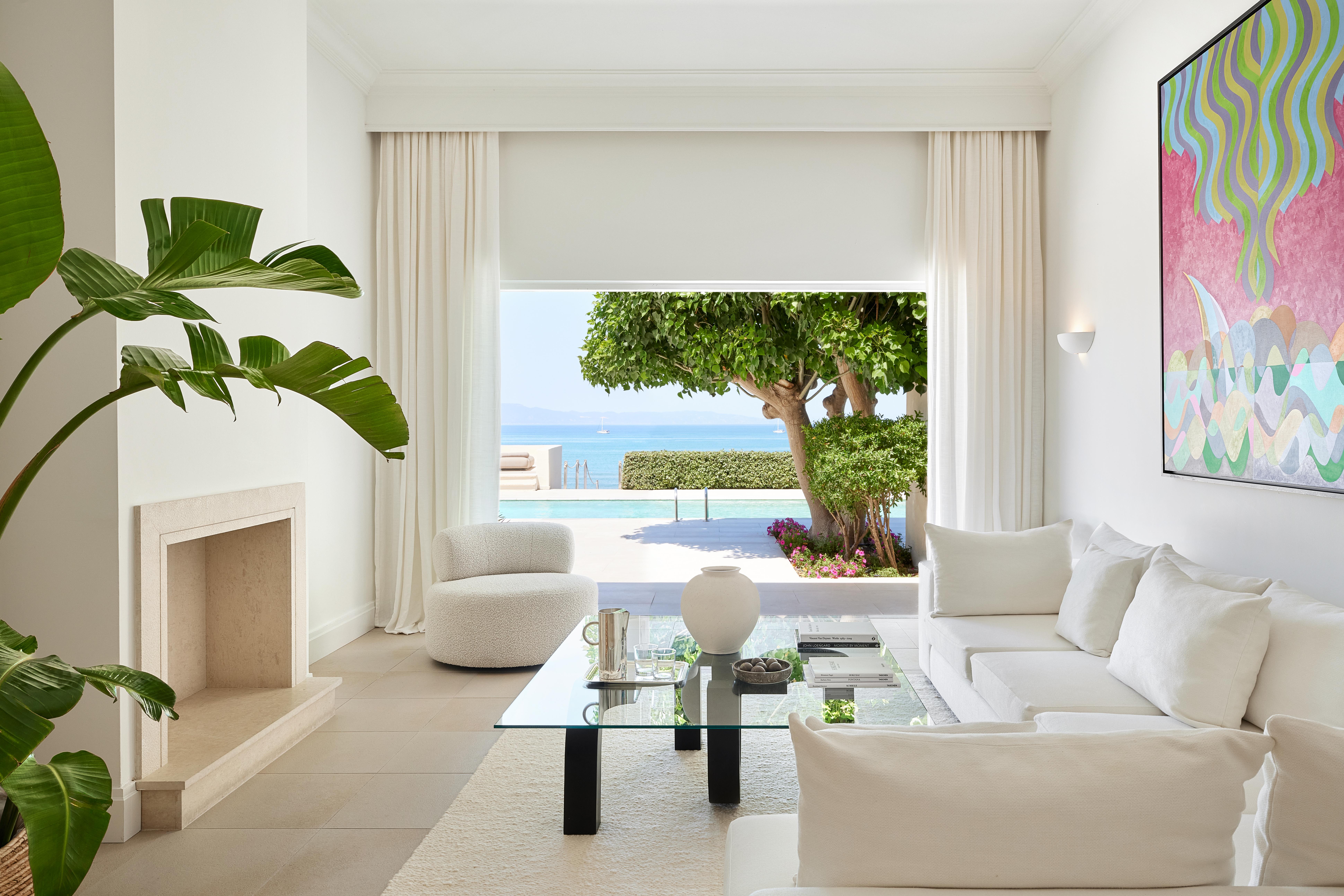 Περισσότερη ιδιωτικότητα προσφέρουν οι ξεχωριστές πισίνες που διαθέτουν κάποιες από τις εκθαμβωτικές βίλες και τις εντυπωσιακές κατοικίες, που ακολουθώντας το ίδιο εκλεκτικό ύφος, μοιάζουν με ιδιωτικά ανάκτορα, λουσμένα στο φως χάρη στα παράθυρα από το δάπεδο μέχρι την οροφή, με διαλεχτά έργα τέχνης να στολίζουν τους χώρους τους, αστραφτερά μάρμαρα, απαλών τόνων κομψή επίπλωση, αποκλειστικές βεράντες και άπλετη θέα από όλες στη θάλασσα. Πρόκειται πραγματικά για μοναδικού χαρακτήρα επιλογές διαμονής, που μπορούν να φιλοξενήσουν ως 12 άτομα, με την ιδιαίτερη αισθητική της η καθεμιά, όπως υποδηλώνουν και τα ονόματά τους.