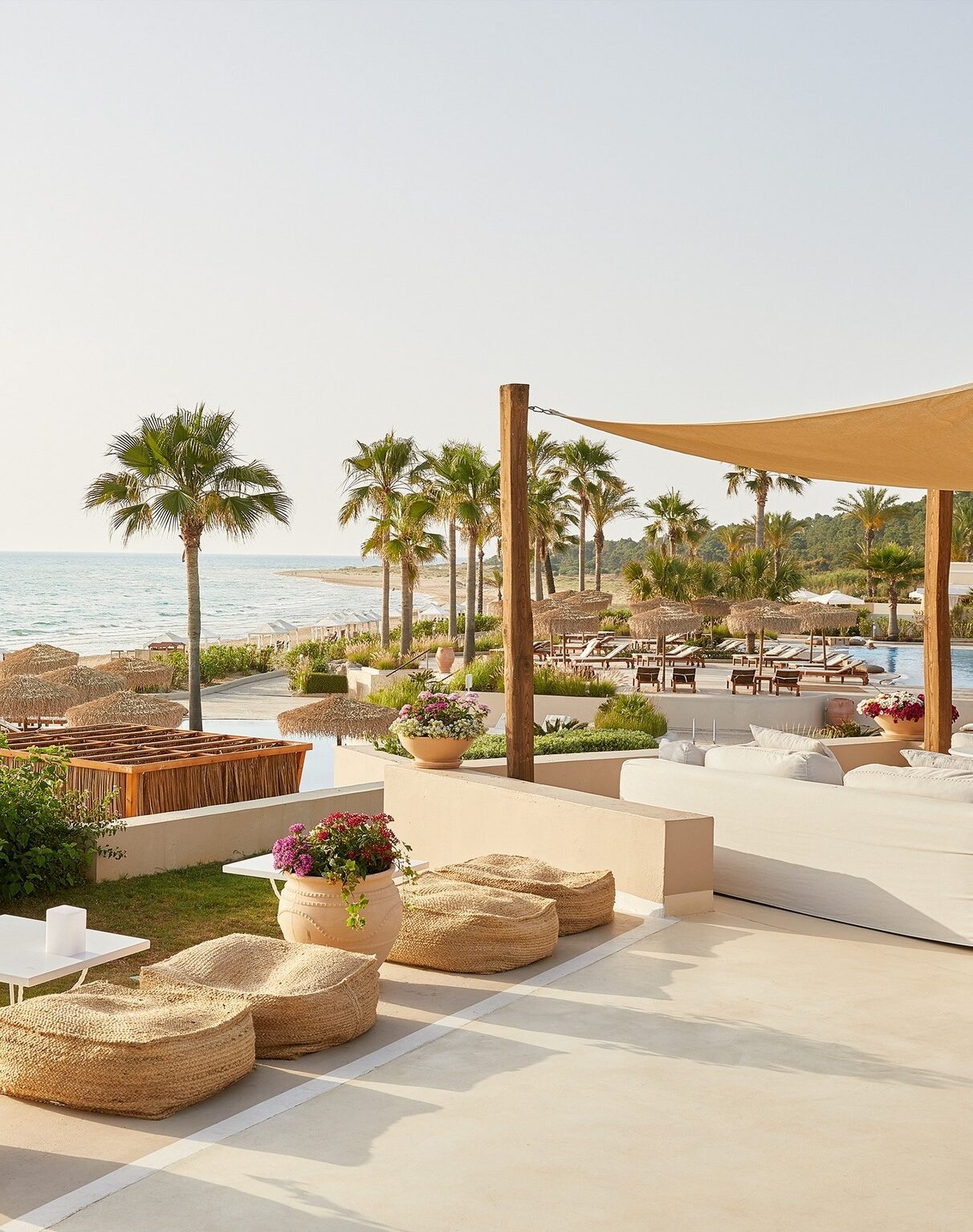 Η δύο επιπέδων Apollonia, λαμπερή όσο ο θεός Απόλλωνας του οποίου φέρει το όνομα, μοιράζει τα 210τ.μ. της σε 4 υπνοδωμάτια, 3 ευρύχωρα μαρμάρινα μπάνια που θυμίζουν ιδιωτικά spa, καθιστικό και τραπεζαρία, ενώ εκτός από δική της πισίνα και απευθείας πρόσβαση στην παραλία, διαθέτει εκτενές εξωτερικό καθιστικό, αίθριο, ιδιωτικό κήπο και σκιερές επιπλωμένες βεράντες. Mικρότερη αλλά εξαιρετικά καλόγουστη, η Villa Iolas ονομασμένη προς τιμήν του σημαντικού γκαλερίστα και συλλέκτη τέχνης Αλέξανδρου Ιόλα, μοιάζει με ρομαντικό καταφύγιο που φωλιάζει στην άκρη ενός αμμόλοφου, απ΄τον οποίο προσφέρει μαγευτική θέα και είναι ιδανική για τετραμελείς οικογένειες που μεταξύ της καλαίσθητης τραπεζαρίας και του άπλετου εξωτερικού χώρου με το τζάκι και την ιδιωτική πισίνα, θα βρουν την απόλυτη άνεση και ιδιωτικότητα.