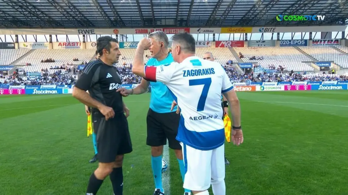 Στο δεύτερο ημίχρονο με την κούραση να κάνει την εμφάνισή της οι All Stars ανέβασαν την απόδοσή τους και στο 53′ κατάφεραν να ισοφαρίσουν. Συγκεκριμένα άλλαξαν ωραία την μπάλα που έφτασε στον αμαρκάριστο Φίγκο που προ κενής εστίας σκόραρε και το πανηγύρισε λίγο πιο έντονα, σαν να είχε απωθημένο την Εθνική που του στέρησε ένα Euro και μάλιστα μέσα στην χώρα του.