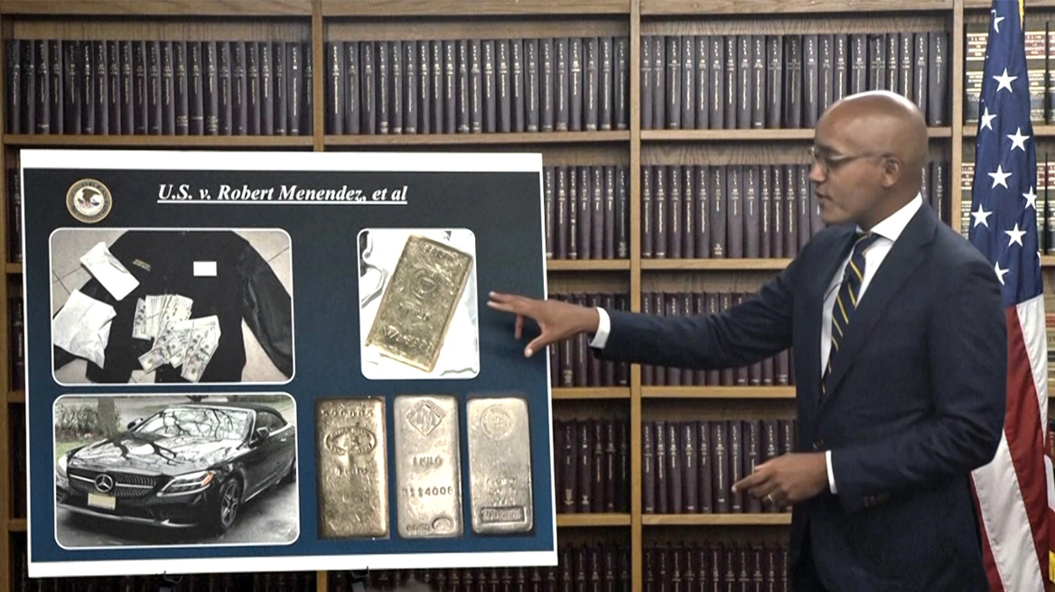 Στη δημοσιότητα δόθηκαν από τις εισαγγελικές αρχές οι φωτογραφίες  από τις ράβδους χρυσού και τα χρήματα τα οποία κατηγορείται ότι έλαβε ο 69χρονος Αμερικανός Δημοκρατικός Γερουσιαστής Ρόμπερτ Μενέντεζ και η σύζυγός του.