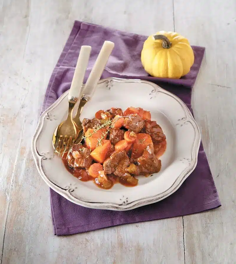 Μοσχάρι στην κατσαρόλα με κολοκύθα και γλυκό κρασί