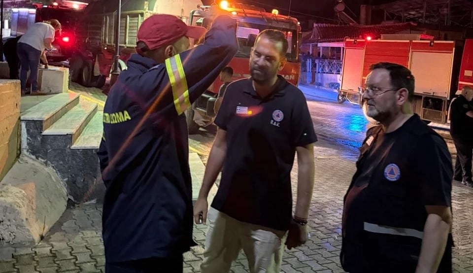 Μαζί με τον Νεκτάριο Φαρμάκη στο πύρινο μέτωπο βρέθηκαν ο Αντιπεριφερειάρχης Ηλείας Νίκος Κοροβέσης και ο διευθυντής του γραφείου του Περιφερειάρχη, Γιάννης Μάκκας.
