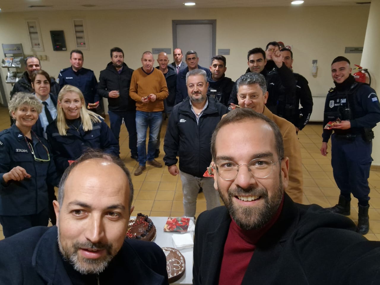 Σημειώνεται ότι τα ξημερώματα της Κυριακής και αμέσως μετά την αλλαγή του έτους, ο Περιφερειάρχης Δυτικής Ελλάδας, Νεκτάριος Φαρμάκης, επισκέφθηκε το Κέντρο Επιχειρήσεων της Αστυνομικής Διεύθυνσης Ακαρνανίας στο Αγρίνιο, ανταλλάσσοντας ευχές με τα στελέχη που έκαναν βάρδια τη νύχτα αλλαγής του έτους. «Εύχομαι καλή χρονιά με υγεία σε εσάς και στις οικογένειες σας. Σας ευχαριστούμε για όλα» ήταν το μήνυμα που έστειλε ο Περιφερειάρχης από τον ασύρματο, προς όλους τους ένστολους που βρίσκονταν σε υπηρεσία. Παράλληλα, έκοψε την πρωτοχρονιάτικη πίτα, ευχόμενος δύναμη για το σύνολο των ανδρών και γυναικών της Ελληνικής Αστυνομίας.