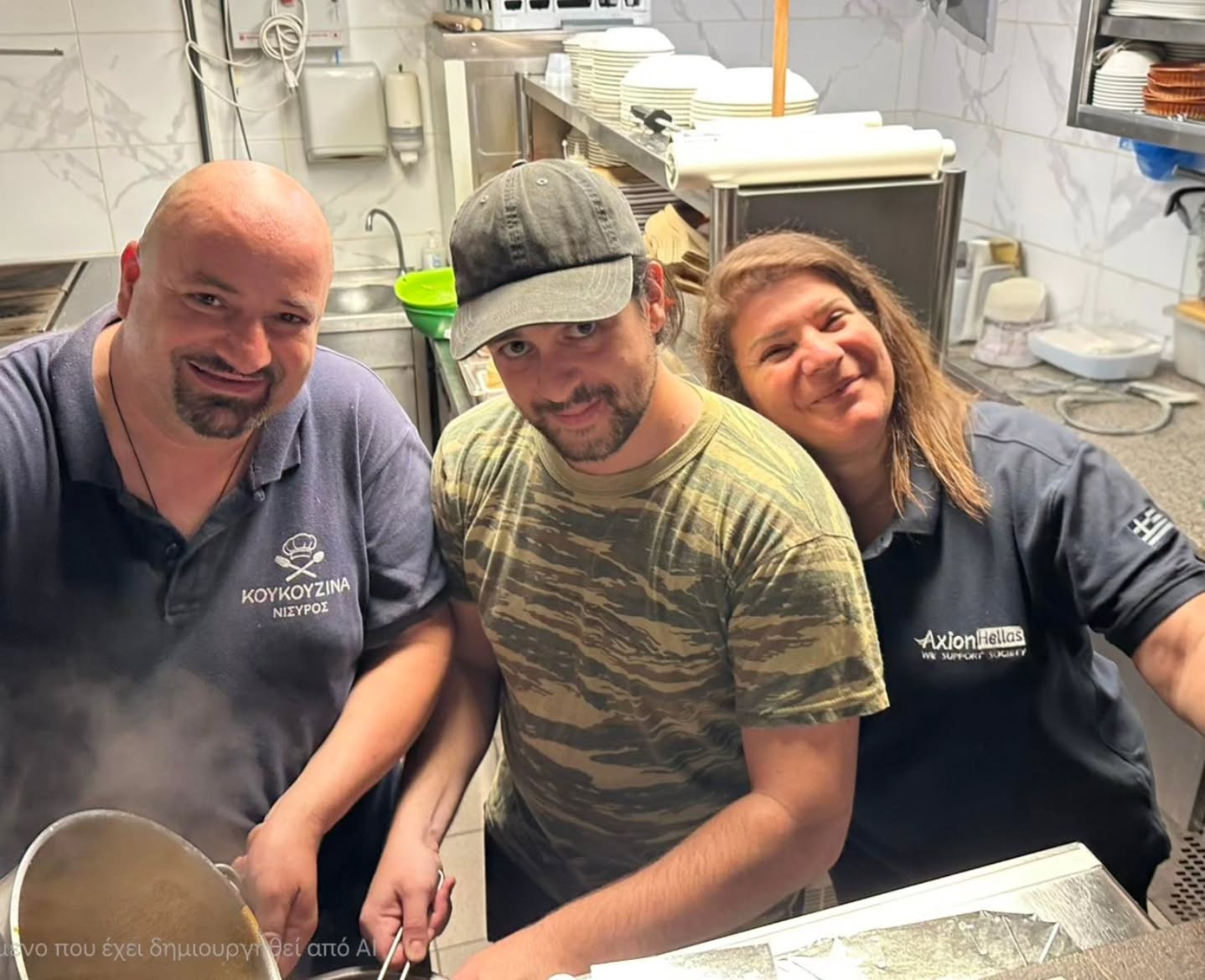 Μια από τις δράσεις της Axion Hellas ήταν και το μαγείρεμα με την Αργυρώ Μπαρμπαρίγου στο εστιατόριο «Κουκουζίνα». Εκεί βρέθηκε και ο Νικόλαος Ντε Γκρες ο οποίος φωτογραφήθηκε, συνομίλησε και έγινε ένα με τους κατοίκους της Νισύρου. Η Αργυρώ Μπαρμπαρίγου ανέβασε φωτογραφίες και καλημέρισε τους διαδυκτιακούς της φίλους από το όμορφο ακριτικό νησί.