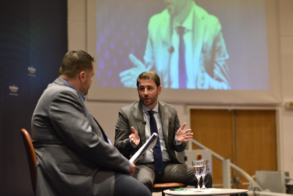 Ξεκαθάρισε ότι δεν αποτελεί στόχο η συγκυβέρνηση με την ΝΔ ή το ΣΥΡΙΖΑ αλλά προτεραιότητα αποτελεί ένα μεγάλο ΠΑΣΟΚ, μία μεγάλη Δημοκρατική παράταξη που θα μπορεί να πρωταγωνιστήσει με ιδέες, θέσεις και πρόγραμμα. “Πρέπει να υπάρχει σοβαρότητα. Οι νέοι δεν εμπιστεύονται τους πολιτικούς, τους θεωρούν επαγγελματίες οι οποίοι θα πουν ότι πρέπει για να πάρουν την ψήφο του ελληνικού λαού και την επόμενη μέρα δεν θα πράξουμε αυτό που λένε. Οραματίζομαι να αλλάξει και να έχουμε πολιτικούς. Πολιτικούς που δε θα είναι 40 χρόνια στη Βουλή και το μόνο τους κίνητρο είναι να κάθονται σε θέσεις εξουσίας, με πολιτικό τους εργαλείο το λαϊκισμό και το πελατειακό κράτος. Εμείς θα είμαστε συνεπής απέναντι στα μεγάλα εθνικά θέματα, συνεπείς απέναντι στον ελληνικό λαό”.