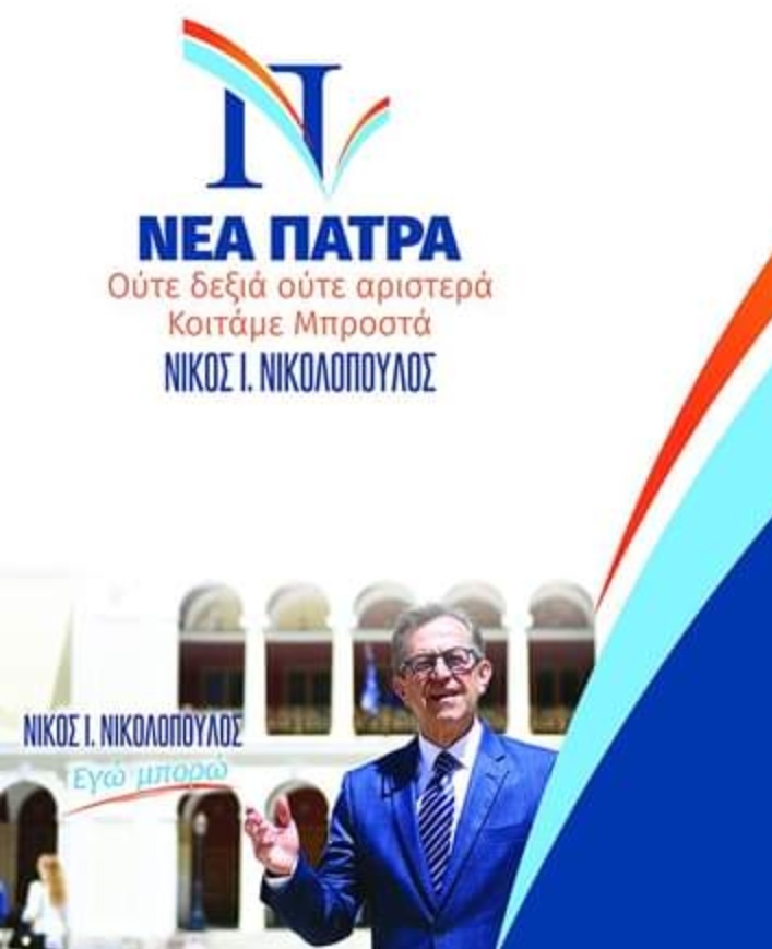 Ως επικεφαλής της Δημοτικής Παράταξης «ΝΕΑ ΠΑΤΡΑ» εύχομαι στους επικεφαλής των Δημοτικών Παρατάξεων «ΠΑΤΡΑ ΕΝΩΜΕΝΗ», «ΠΑΤΡΑ ΣΠΟΥΔΑΙΑ ΚΑΙ ΠΑΛΙ» και «ΣΠΙΡΑΛ» (τυχαία η σειρά αναφοράς), Καλό Προεκλογικό Αγώνα και Επιτυχία στον κοινό μας στόχο, για την 3η Απελευθέρωση της Πάτρας από την από την Λαϊκή Υποκρισία του ΚΚΕ, την Οπισθοδρόμηση και τη Μιζέρια».