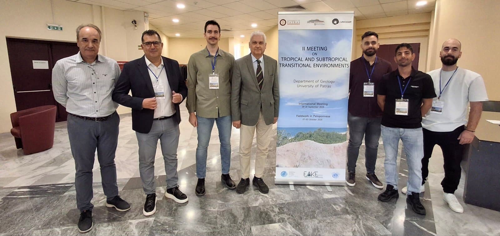 Το Εργαστήριο Ιζηματολογίας του Τμήματος Γεωλογίας του Πανεπιστημίου Πατρών  φιλοξένησε το «II International Meeting on Tropical and Subtropical Transitional Environments», το διάστημα 29–30 Σεπτεμβρίου 2025, στο Συνεδριακό και Πολιτιστικό Κέντρο Πανεπιστημίου Πατρών. Ερευνητές από την Ευρώπη, τη Λατινική Αμερική και τις Ηνωμένες Πολιτείες συναντήθηκαν για να ανταλλάξουν επιστημονική γνώση και να ενισχύσουν τη διεθνή συνεργασία σε θέματα γεωλογίας, παλαιοπεριβάλλοντος, κλιματικής αλλαγής και οικολογίας. Το συνέδριο πλαισιώθηκε από τριήμερη επιτόπια έρευνα πεδίου σε χαρακτηριστικά οικοσυστήματα, όπως η λίμνη Βουλιαγμένη Περαχώρας, τα παράκτια οικοσυστήματα της Δυτικής Πελοποννήσου με τις λιμνοθάλασσες Γιάλοβας, Καϊάφα και Κοτυχίου, καθώς  και το Δάσος της Στροφυλιάς.