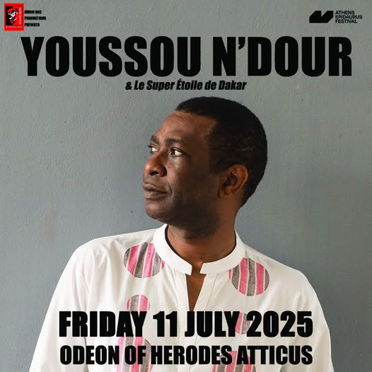 Την Παρασκευή 11 Ιουλίου 2025, ο Γιουσού Ν΄Ντουρ θα βρεθεί στο Ηρώδειο για μια μοναδική εμφάνιση στο πλαίσιο του Φεστιβάλ Αθηνών Επιδαύρου.