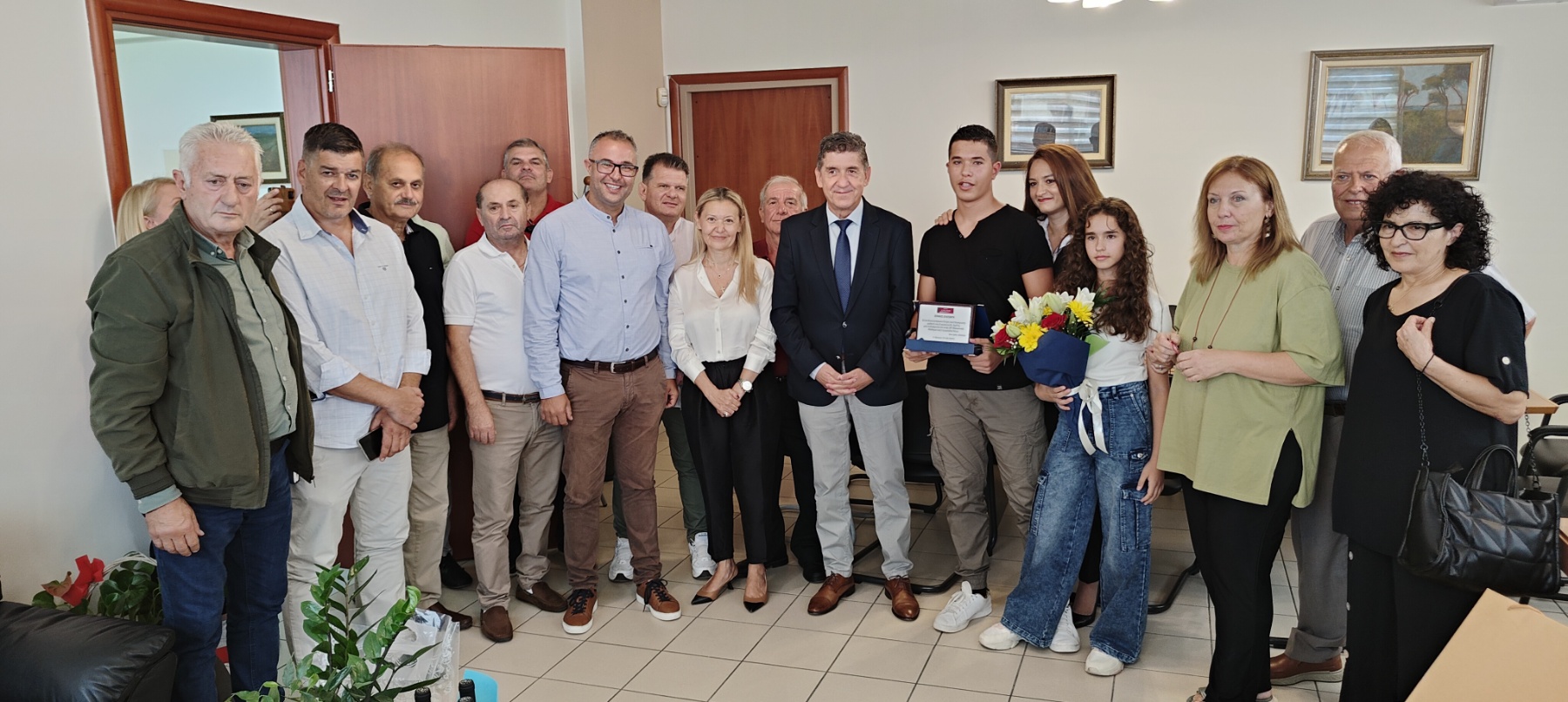 Σ’ ένα συγκινητικό κλίμα ο Δήμαρχος Δυτικής Αχαΐας Γρηγόρης Αλεξόπουλος βράβευσε το μαθητή της Β΄ τάξης του Γυμνασίου Κάτω Αχαΐας, Πέτρο Κανελλόπουλο για τη διάκρισή του στην 28η Βαλκανική Μαθηματική Ολυμπιάδα Νέων.