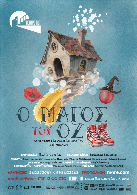 Το θέατρο Act και η θεατρική ομάδα Κάνθαρος παρουσιάζουν για πρώτη φορά στην Πάτρα το εξαιρετικό κλασικό έργο Ο Μάγος του Οζ ειδικά σχεδιασμένο για παιδιά. Οι παραστάσεις ξεκινούν την Κυριακή 16 Νοεμβρίου και θα παίζονται κάθε Κυριακή στις 12.00. Βασισμένη στο διάσημο ομώνυμο μυθιστόρημα του Φρανκ Λύμαν Μπάουμ που αποτελεί ένα από τα πιο σημαντικά έργα της παιδικής λογοτεχνίας, η συγκεκριμένη παράσταση είναι μια πρωτότυπη και ολόφρεσκια θεατρική διασκευή του κλασικού κειμένου ειδικά προσαρμοσμένη με τέτοιο τρόπο ώστε να μπορούν να την απολαύσουν και οι μικροί και οι μεγάλοι θεατές.